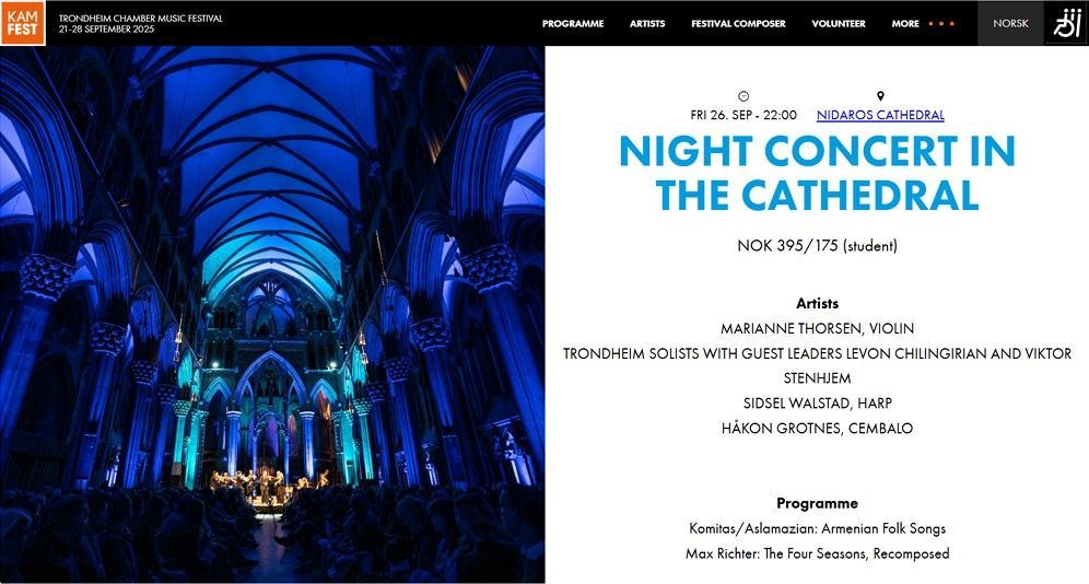 News: Marianne Thorsen performs Max Richter: The Four Seasons Recomposedat Nidarosdomen, Trondheim's Nidaros Cathedral.